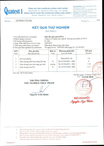 Sản phẩm đã được tổng cục đo lường cấp giấy chứng nhận và kiểm nghiệm và là thương hiệu độc quyền thuộc #công_ty_DVA